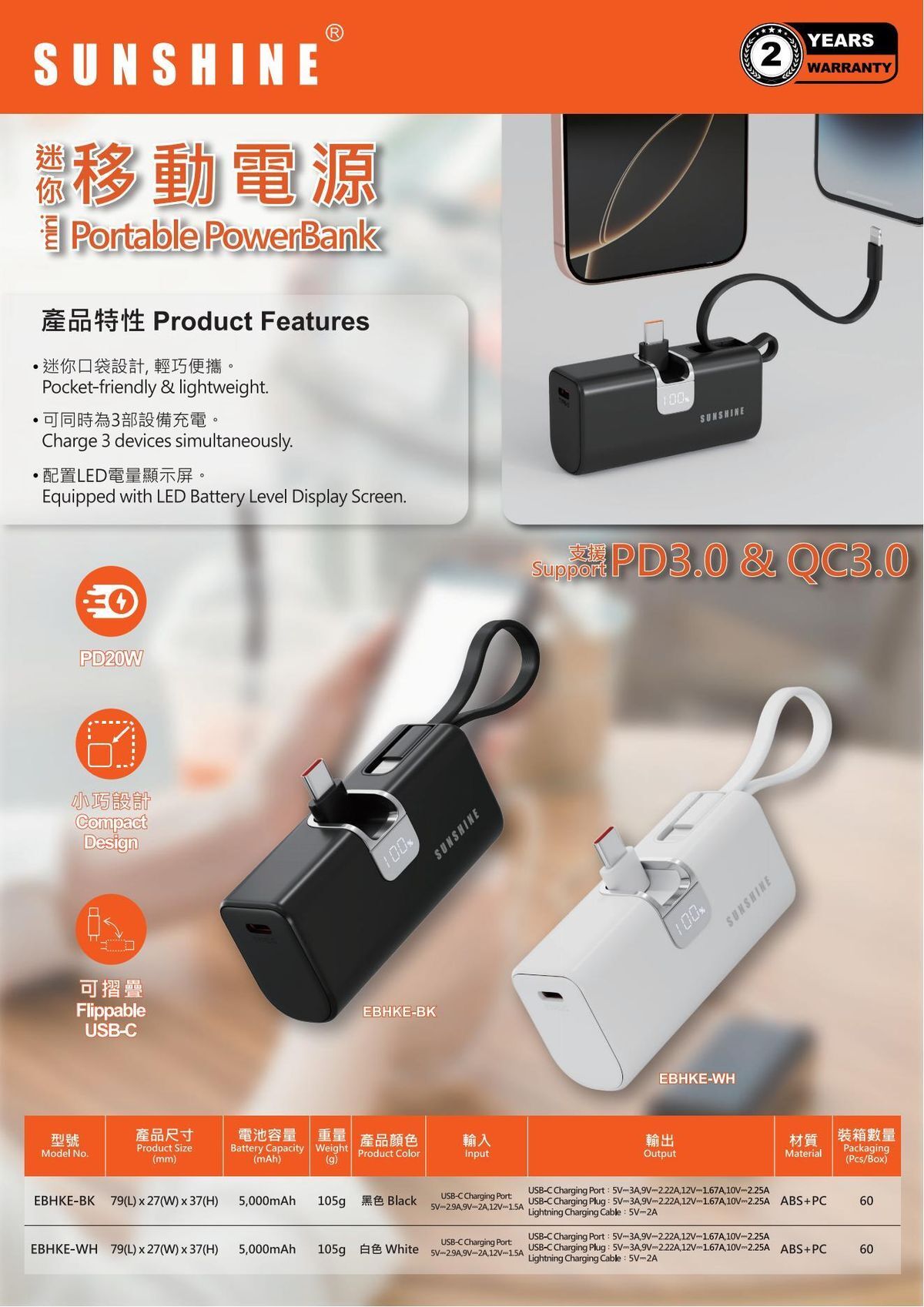 Built-in USB-C charger and Lightning Fast Charging Cable support Fast Charging.
