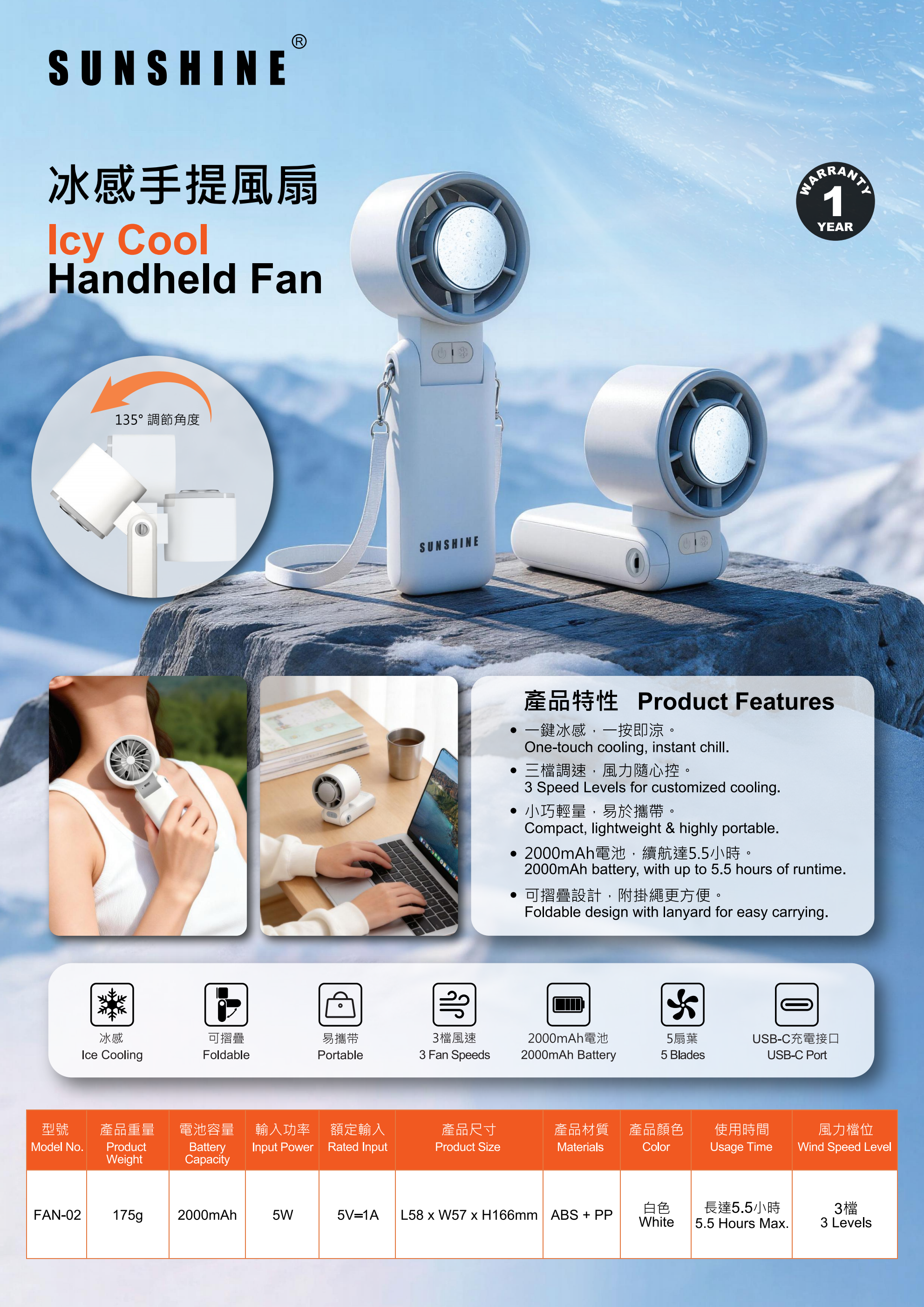- 2000mAh電池,續航力達5.5小時