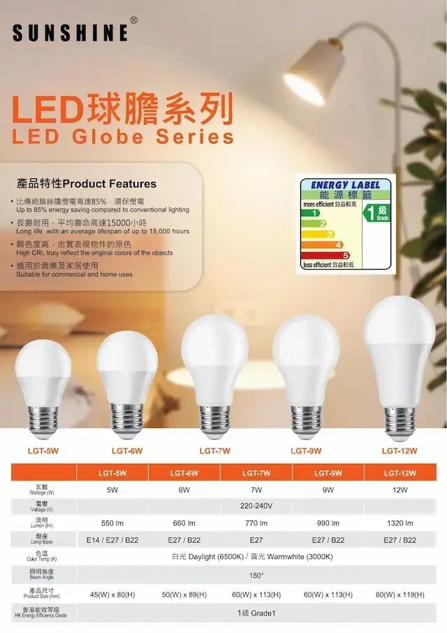 - 燈膽尺寸 (高度 x 寬度):45mm x 80mm